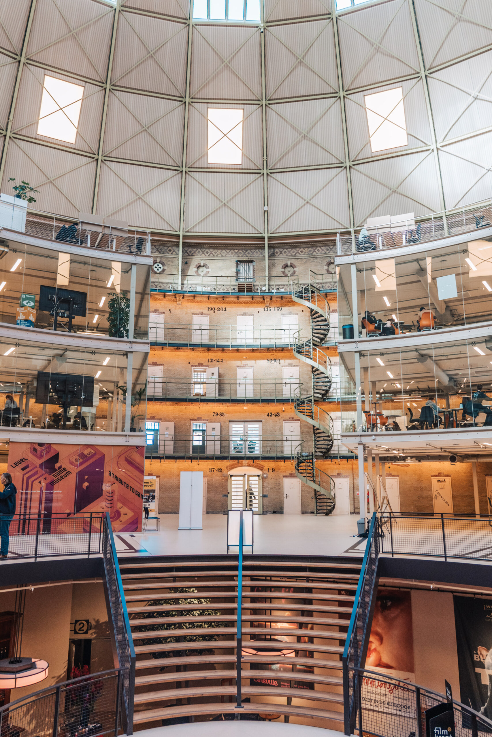 De Koepel in Haarlem heeft een transformatie ondergaan van voormalige strafgevangenis naar een openbare ontmoetingsplek. Onder de indrukwekkende koepelconstructie is de begane grond vrij toegankelijk voor bezoekers. Je vindt in de Koepel onder andere een moderne bioscoop van FilmKoepel, waar dagelijks diverse films worden vertoond in een bijzondere omgeving. Verder kun je hier werkplekken huren en fungeert het gebouw voornamelijk als werkruimte. Er zijn wel verschillende mogelijkheden om wat te eten en te drinken, van een kop koffie tot een uitgebreide maaltijd en de sfeer te proeven van de voormalige gevangenis.
