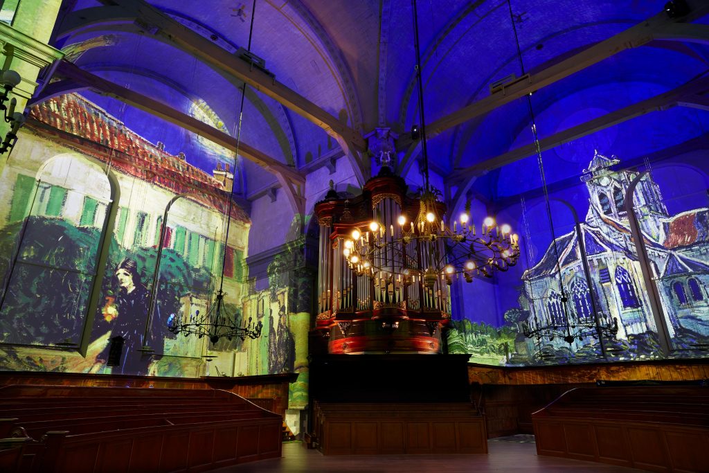 Mooie licht en geluid voorstelling in de Noorderkerk in Amsterdam over Van Gogh & Rembrandt.